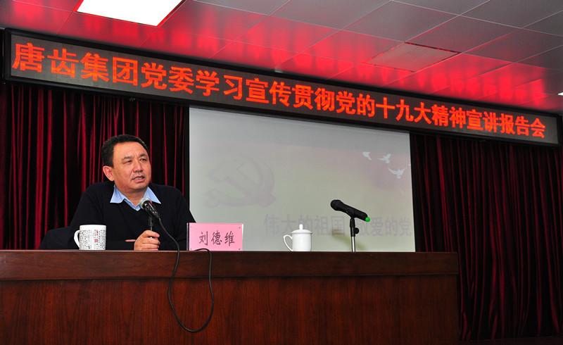 市国资委副调研员刘德维同志以《伟大的祖国 敬爱的党》为主题向全体党员干部解读宣讲十九大精神。会议在全体党员干部合唱《歌唱祖国》中拉开帷幕。德维同志从“中国共产党的九十六年”、“从历史走过的习近平同志为核心的治国理政的5年”、“中国的文化自信”三个篇章,带领全体党员干部重温了中国共产党的发展历史,深刻领悟到中华人民共和国成立的来之不易,体会了习近平总书记提出的中华民族伟大复兴的中国梦的深刻涵义和十九大精神的精髓。