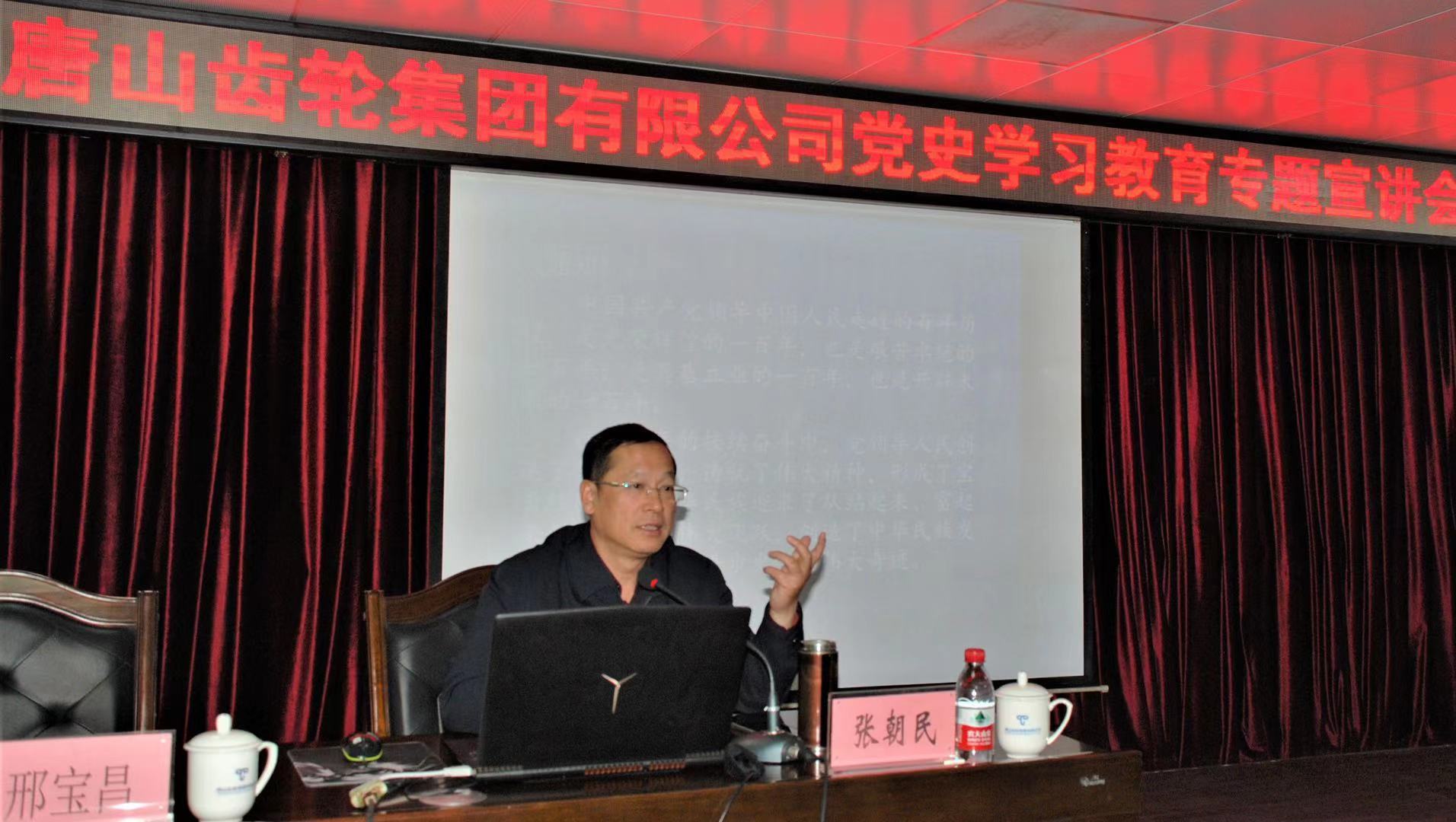 为庆祝建党100周年,认真贯彻落实上级党委党史学习教育安排部署,4月9日上午,半岛电子邀请唐山市委党校副校长、教授张朝民作题为《辉煌历程,伟大成就——中国共产党百年历史导读》的专题宣讲。张朝民教授是河北省委党校系统教学名师、省基层理论宣讲先进个人,长期从事经济管理学、思想政治理论和传统文化的教学与研究,出版《中国财政税收金融理论与实践》、《中国梦—从历史走向未来》、《培育和践行社会主义核心价值观》等著作。半岛电子党委书记、董事长邢宝昌主持会议,集团全体党员和中层以上干部参加会议。