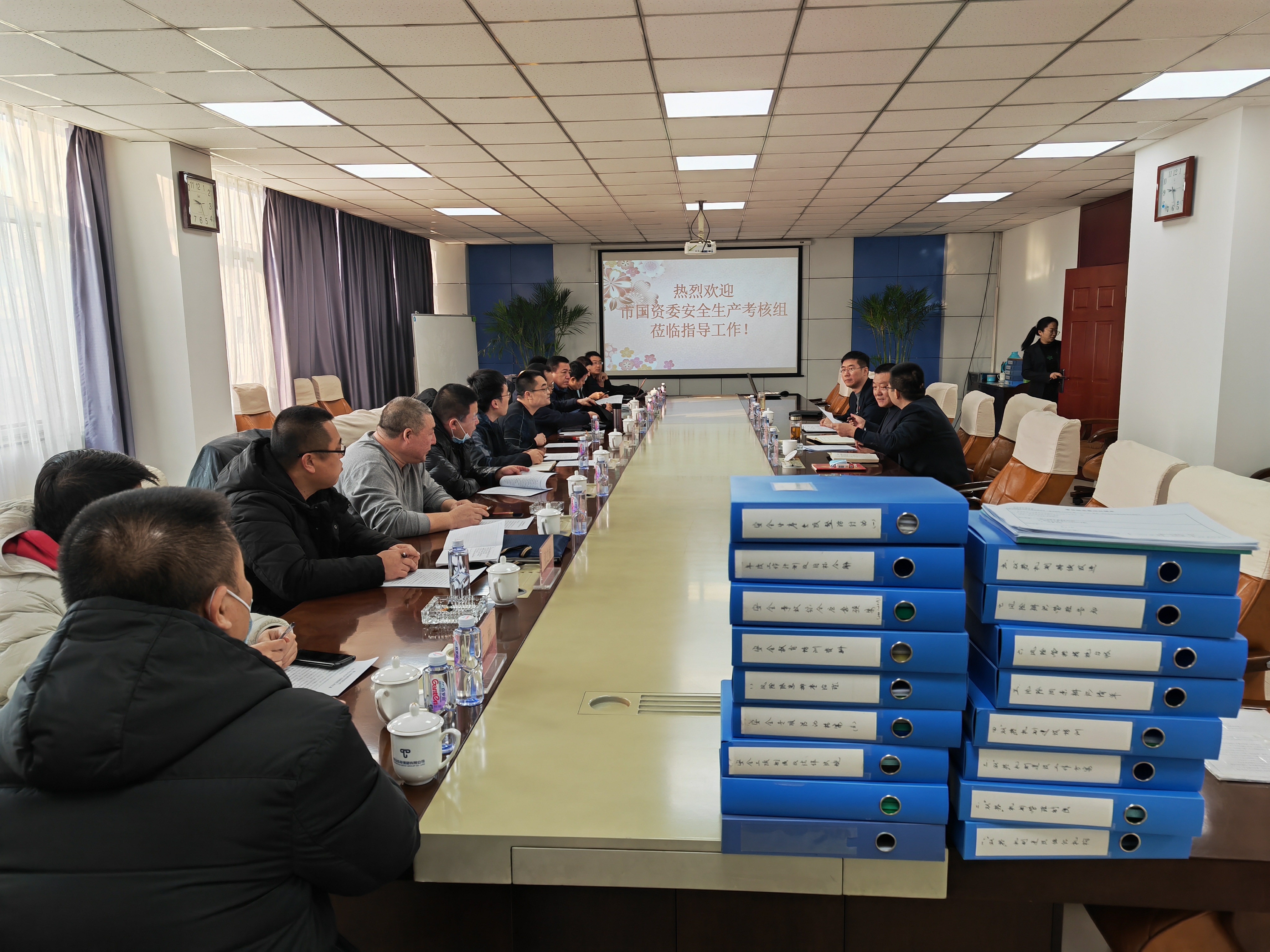 2022年1月14日,市国资委安全生产绩效考核组对半岛电子2021年安全生产绩效管理工作进行考核。半岛电子党委书记、董事长邢宝昌陪同考核。