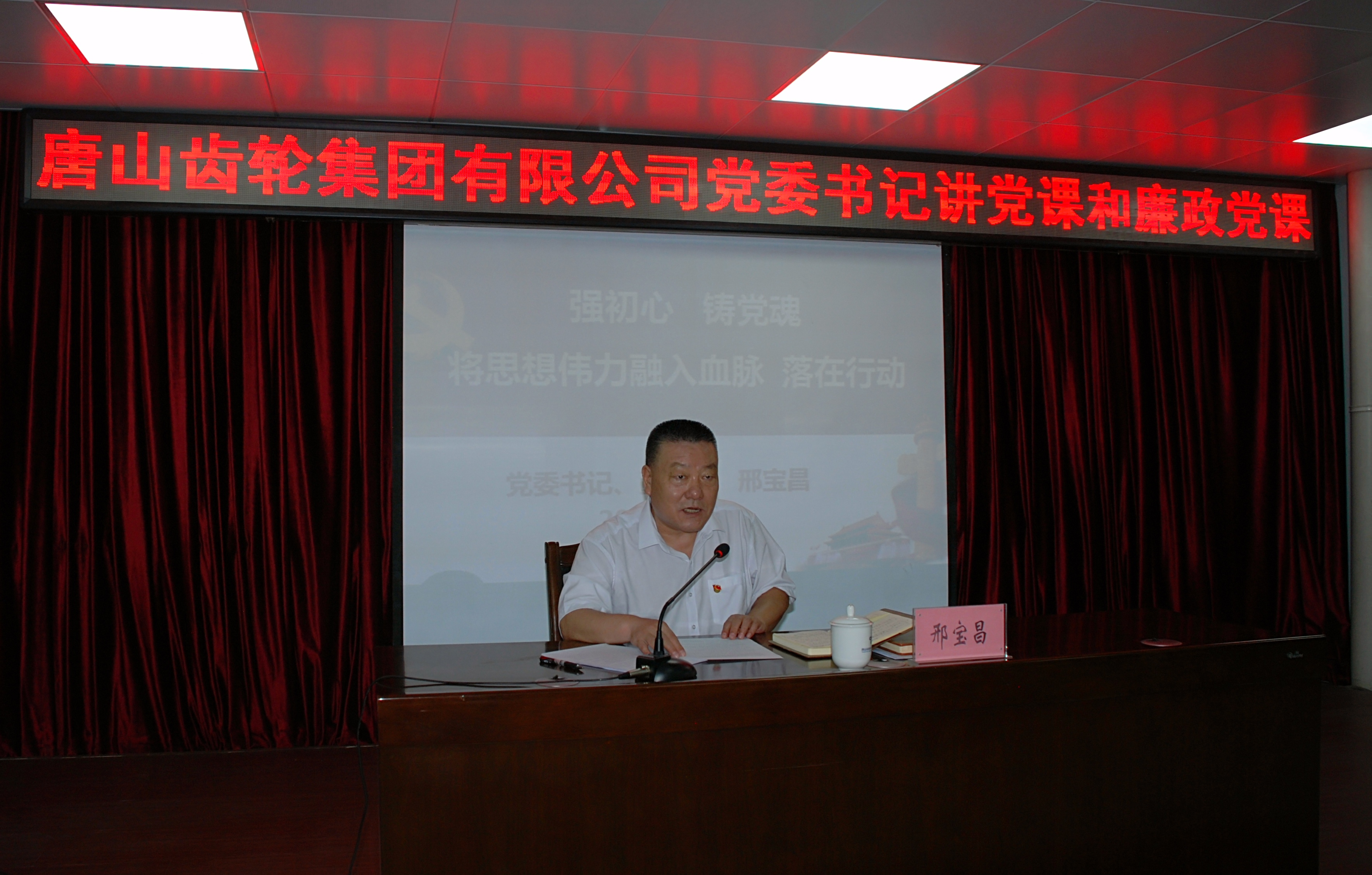 集团党委书记、董事长邢宝昌同志向光荣入党的新党员、向受到表彰的先进典型表示祝贺,向与会的党员致以诚挚问候和崇高敬意,并以《强初心,铸党魂,将思想伟力融入血脉、落在行动》为题,讲授了一场生动深刻的党课。
